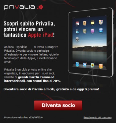 Diventa Socio Privalia adesso e se percaso dovessi vincere in iPad, non dimenticare di farmelo sapere!