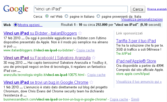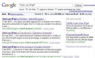 Una banale ricerca su Google per “vinci un iPad” ad oggi produce quasi 300.000 risultati.
